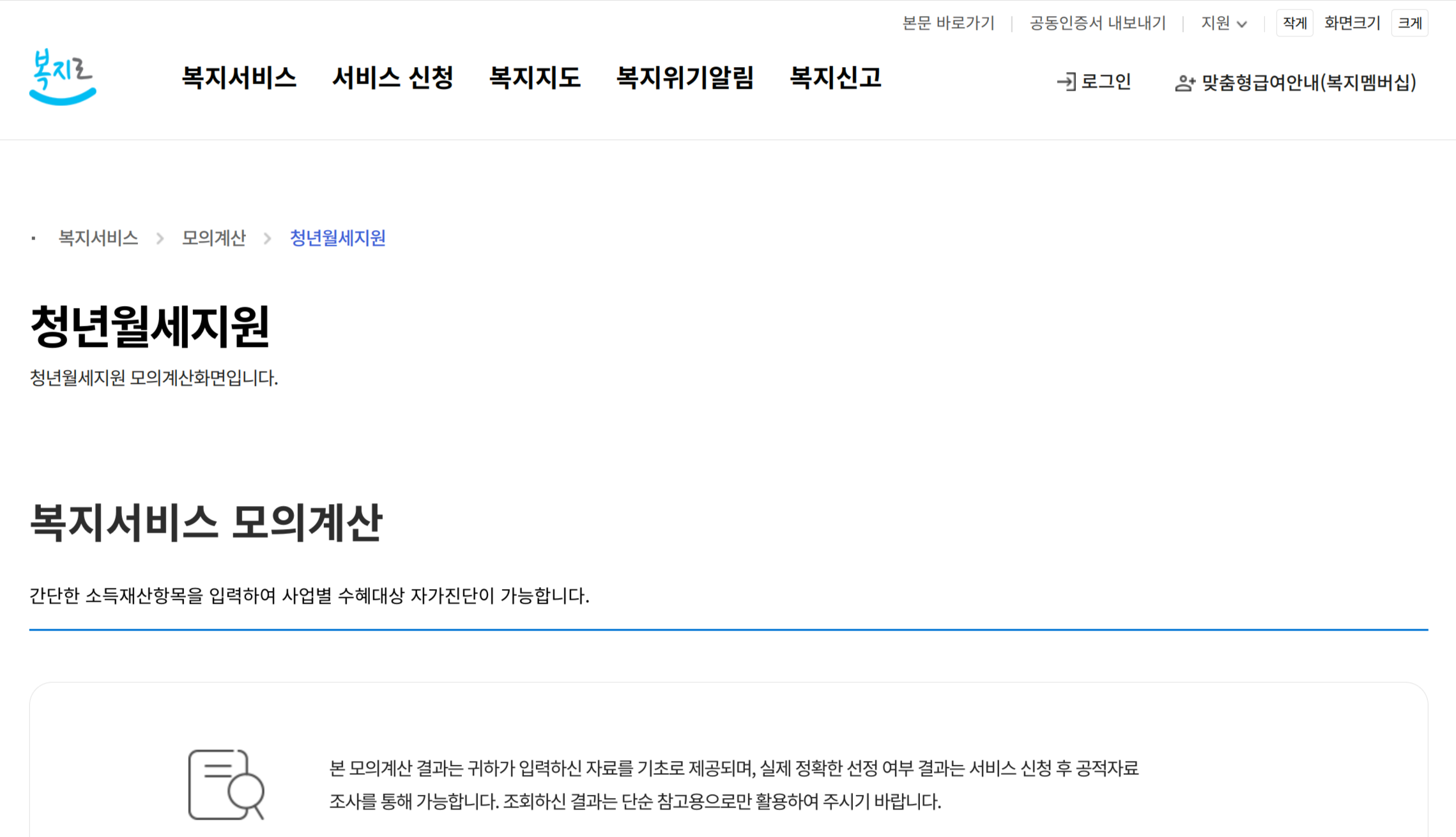 복지로 홈페이지