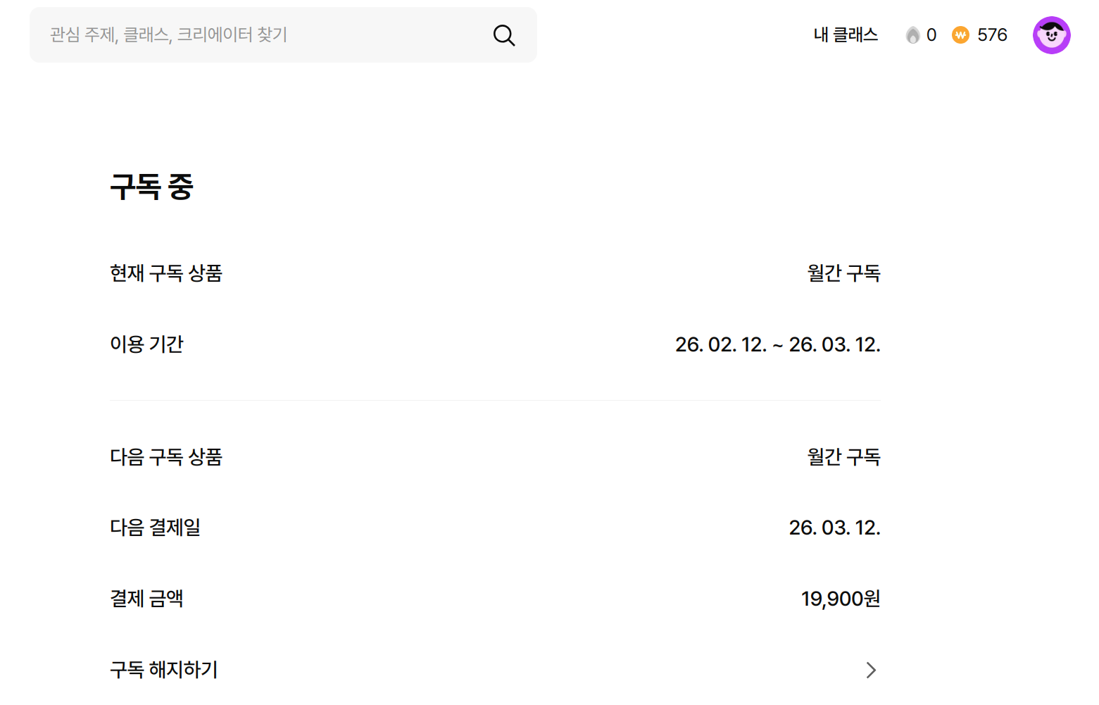 현재는 월 구독 상태입니다.