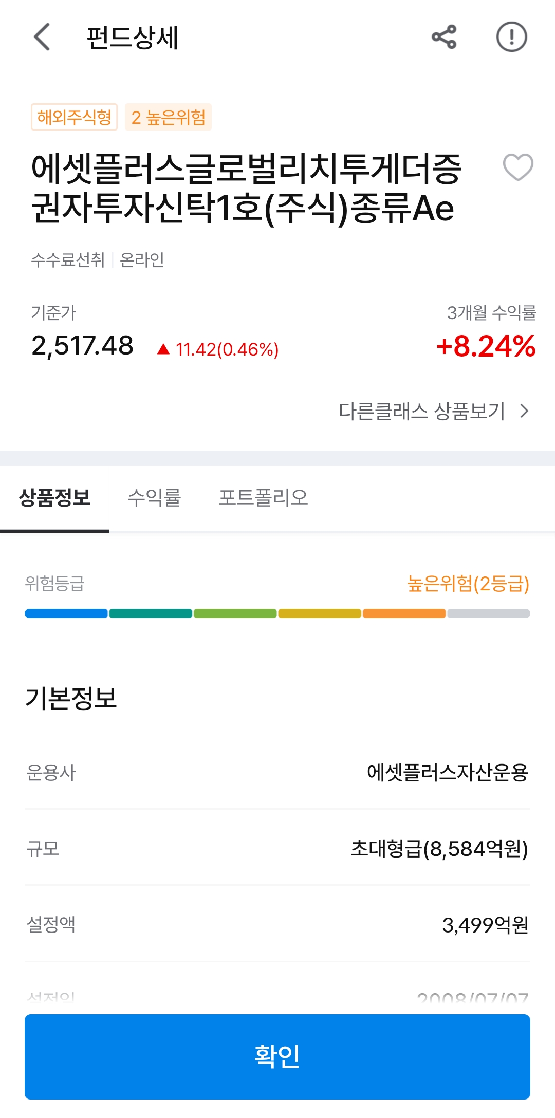 2017년쯤 가입한 펀드가 있는데, 이번에 돈쓸 일이 있어서 일부 매도하려고 확인해봤다.