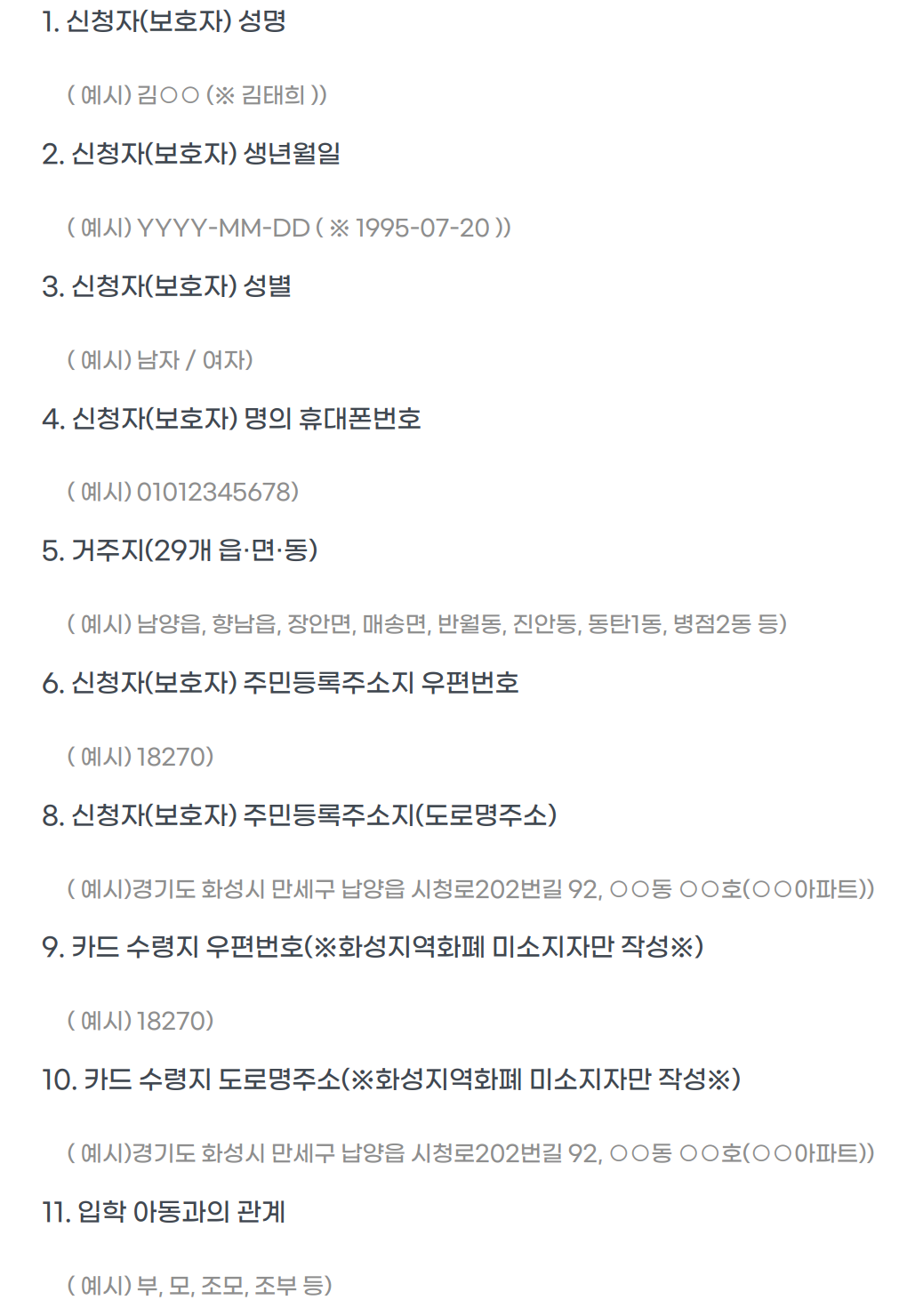 • 아이 학교가 화성시 밖이거나 대안학교여도 신청 가능